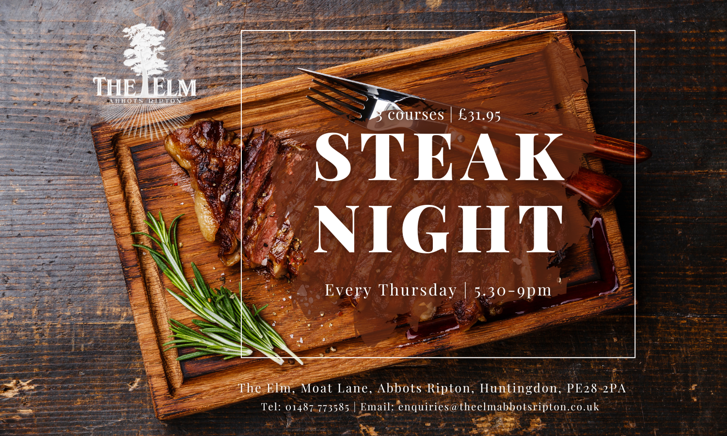 The price includes a choice between 4 different cuts of steak, chunky chips or creamy mash, and a choice of sauce.